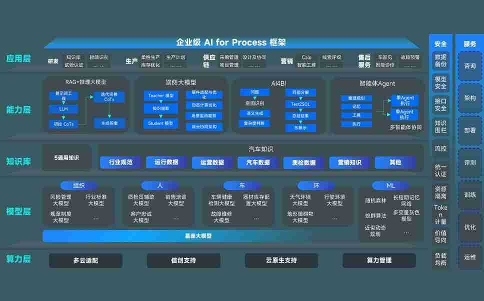 端到端的一站式AI工作空间深度融合了从企业战略规划到日常经营的全流程业务板块,,,,定向解决车企内部领域多、、、、部门多、、、、链条长、、、场景碎片化等难题,,,支持车企快速构建以AI为核心的生产力写作体系,,,实现任务执行与AI能力的无缝集成与交互